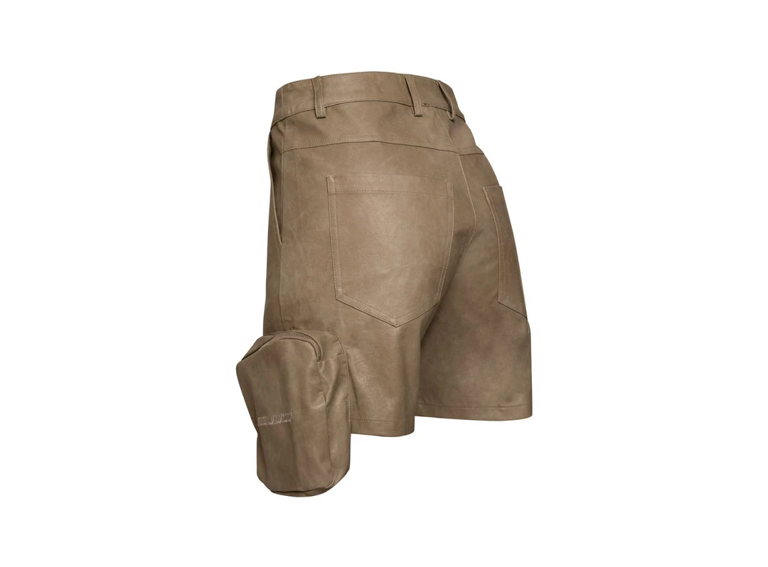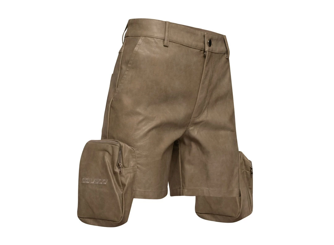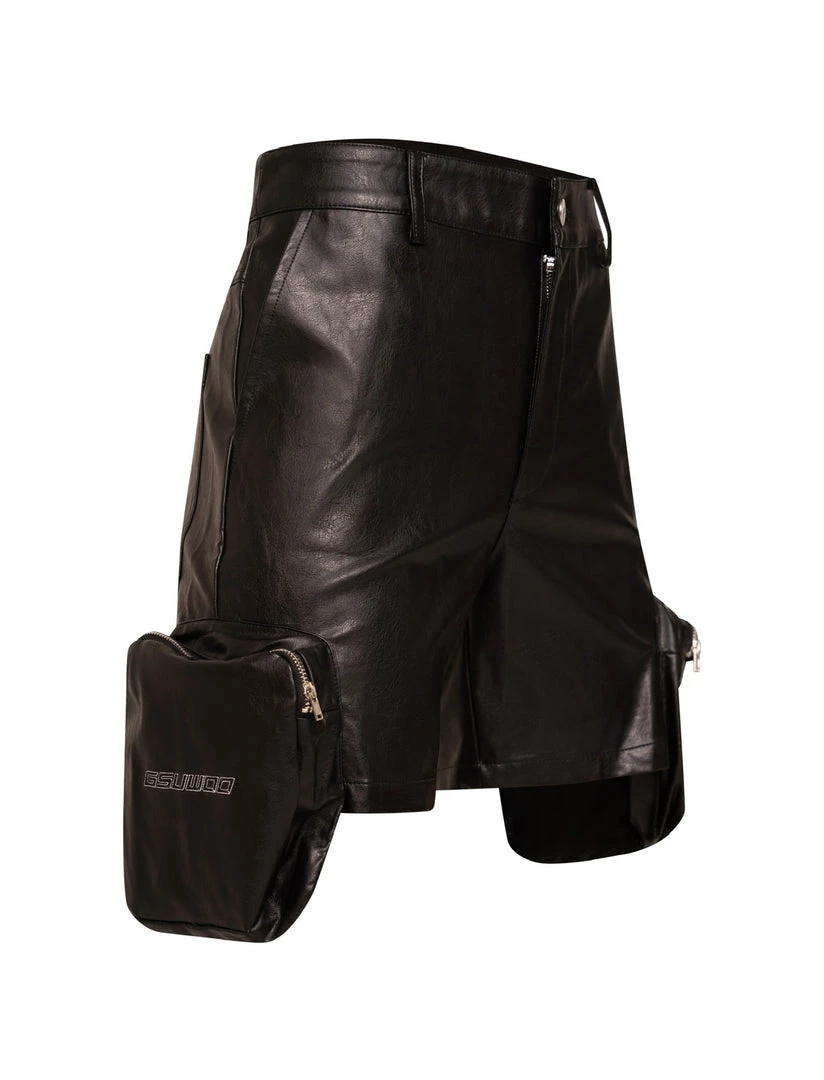 Shorts the Gsuwoo way. Hanging Shorts are made of the highest quality vegan leather and features two big cargo style pockets. The big pockets which embodies our logo are the main focal point of these shorts aside from the material.