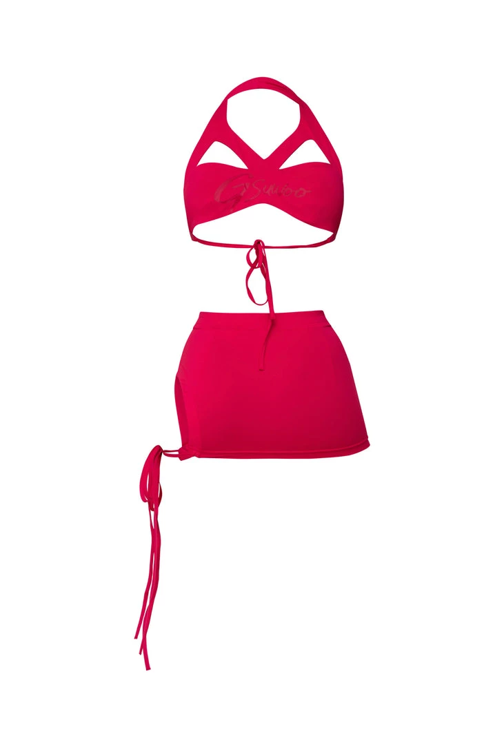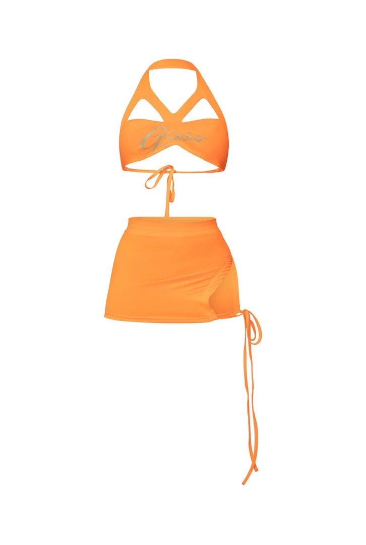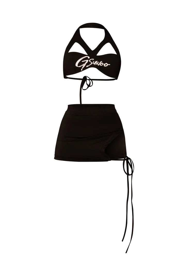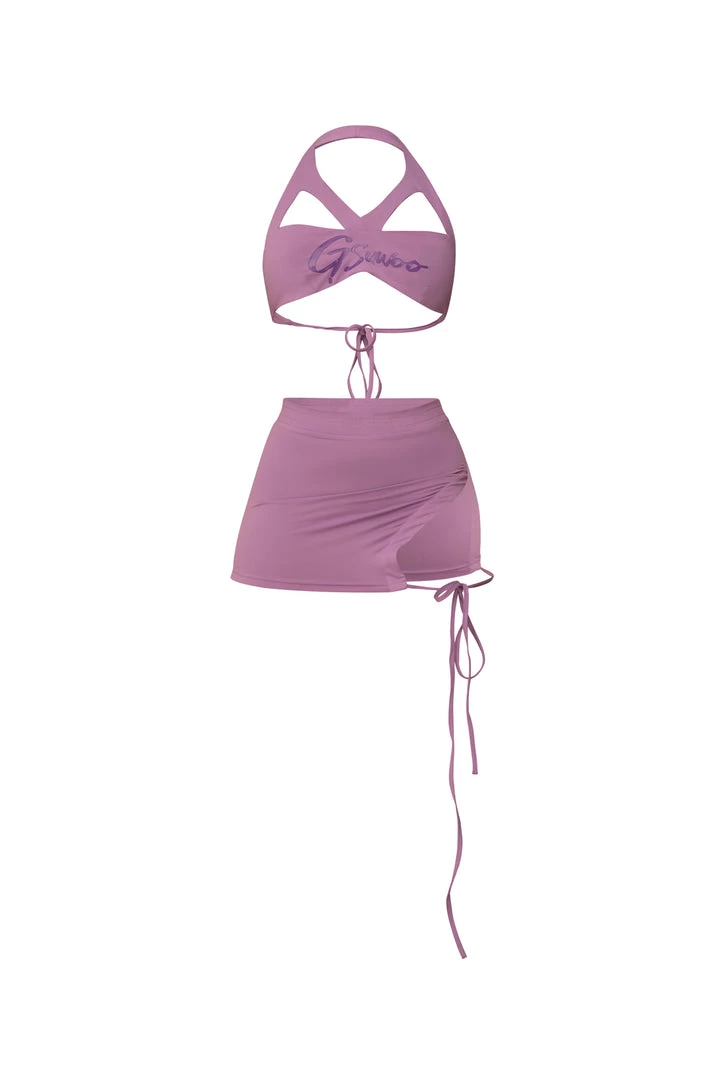 G-Lo is ready for fun and sun. We’re ready for the pool parties and hot bodies with our newest release G-Lo which is a three piece set sold separately, including a triangular top and bottom pantry and side skirt combo. The top features two triangles above the bust in the form of a halter top. The bottom combo features color matching panties that embodies our logo with a mini skirt cover up  that wraps around the leg. (We cut it in photo)