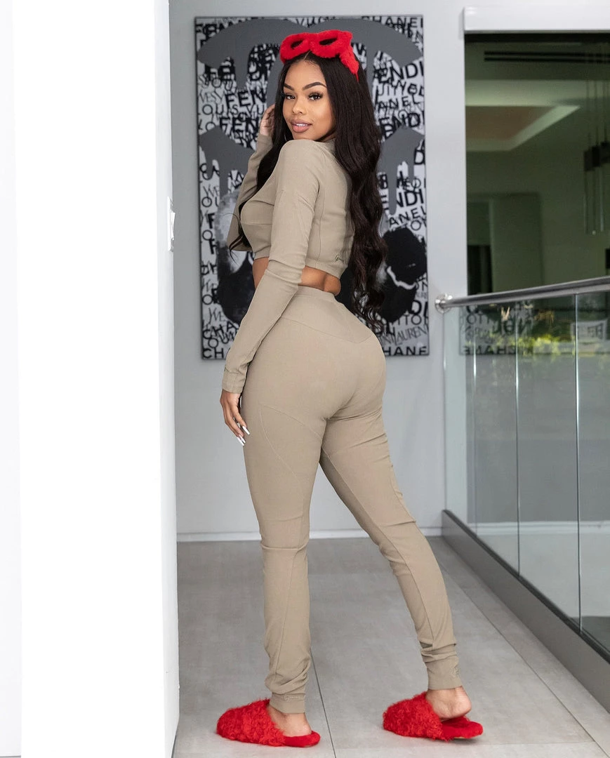 What’s the jwett? Our new “Jwett is another essential we’re adding to your list. Jwett is a solid color two piece set that is detailed with body contouring outlines to exemplify your figure. This set features a crop top with logos on the sleeve and back of shirt. The bottoms features detailing that embodies panties. Jwett can be styled up or down depending on the occasion but its comfortability will amaze you.