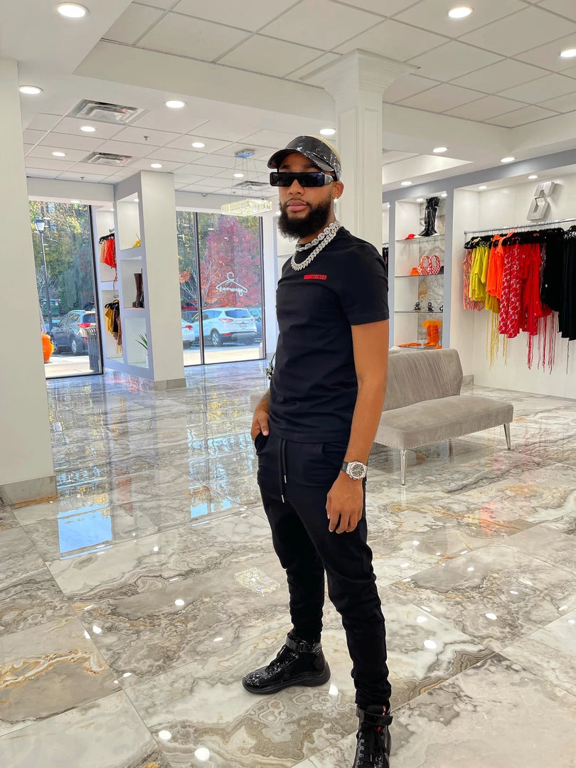 Nowadays less definitely can say more when you have the right accessories and shoes. Our “Signature Set” features a muscle tee and slim jogger pants accompanied by an accent red logo. This set can be unisex and can be worn for leisure or dressed up for the occasion.