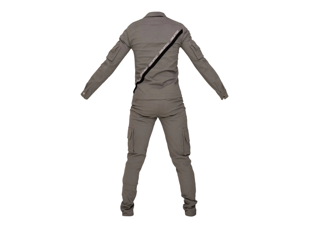 You’re ready for anything in our new Tactical set. This set comes with a long sleeve zippered top and slim-fitted color matching pants. Tactical features a cargo style look with pockets on the sleeves and thigh area on the pants. The back of the top features our gsuwoo logo repeatedly in a diagonal slant accompanied by a black braided detail. This set is unisex and can be worn for a night out our layered up for the weather.
