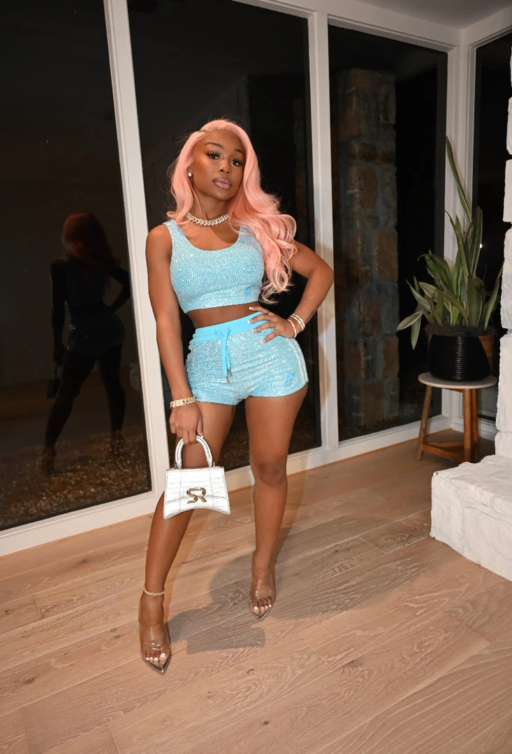 Shower me diamonds and Precious Stones! Precious Stones features a crystal covered pinstriped shorts, with an elastic waistband with draw strings. This piece can be dressed up or down and can complete any look.