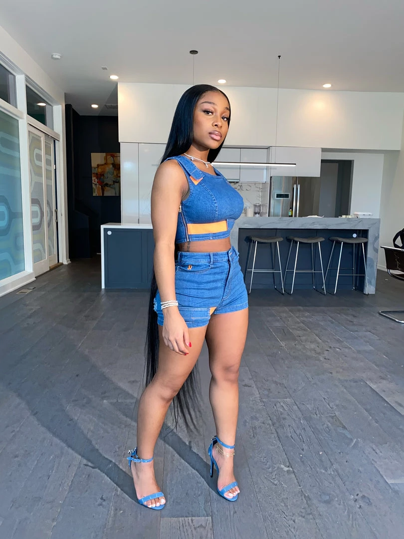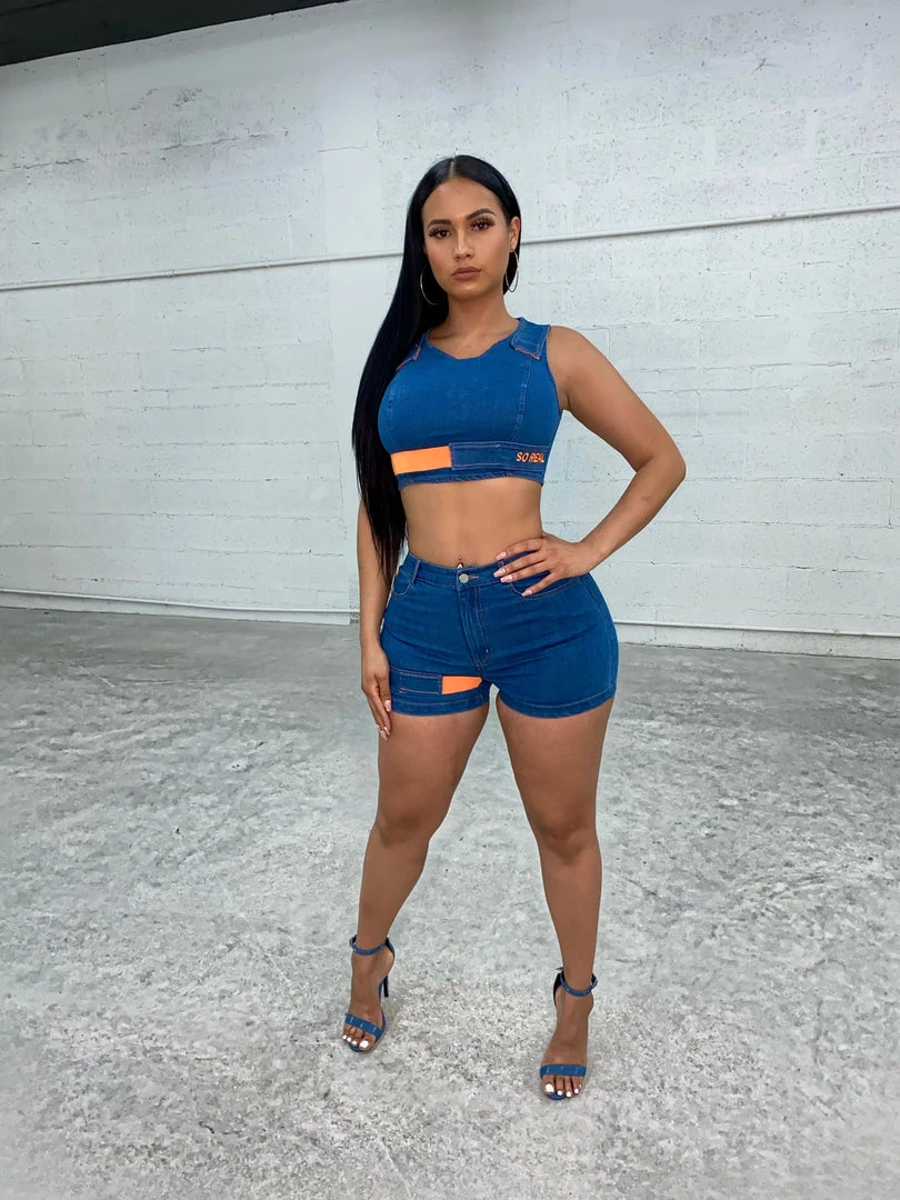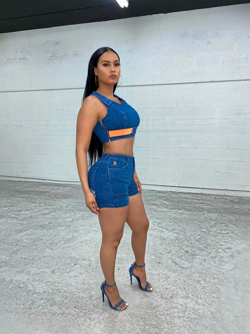 Style and flair is all we wear! Our new Denim Combat set comes as a 2 piece set shorts and cropped top. The pieces can be separated to create different looks and can be dressed up or down depending on the occasion.