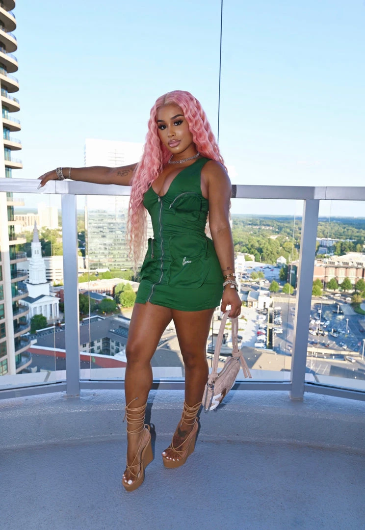 Euphoria! She said, “What’s that feeling?” I tell her, “Girl, the feeling euphoria” this cargo dress with throw you in daze for sure. this cargo dress features our infamous 3 pockets as seen on our 3pf set.