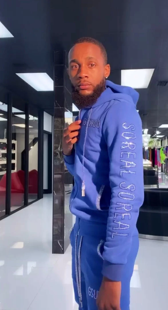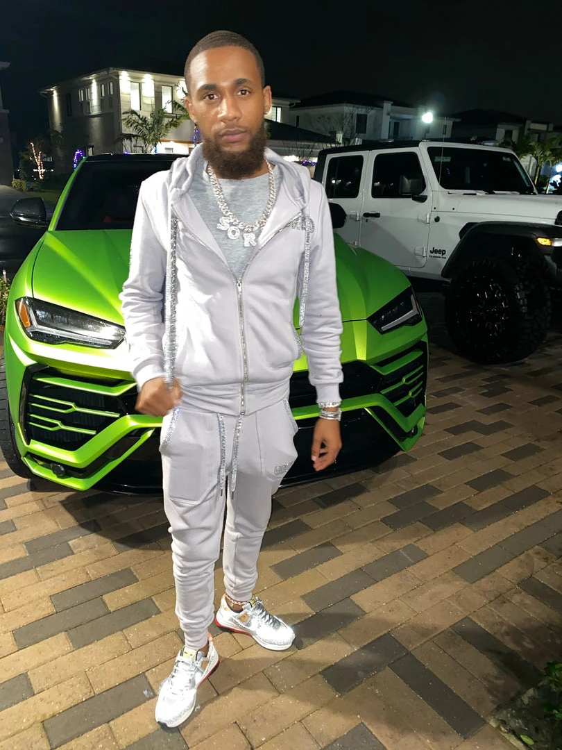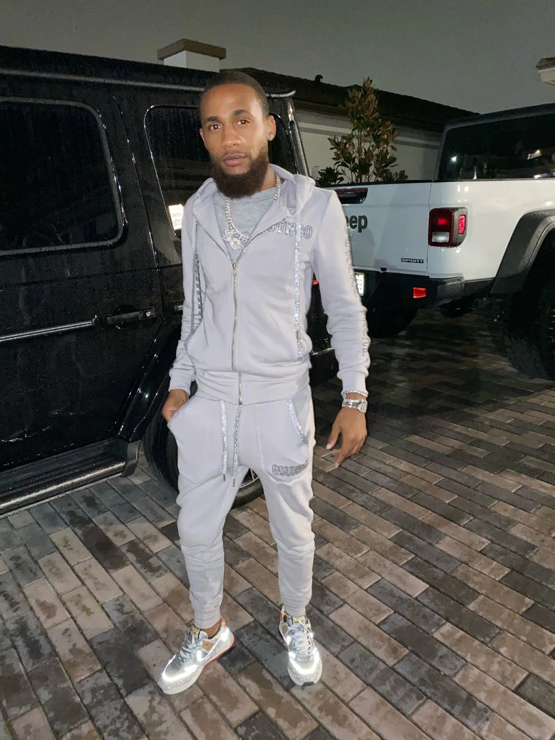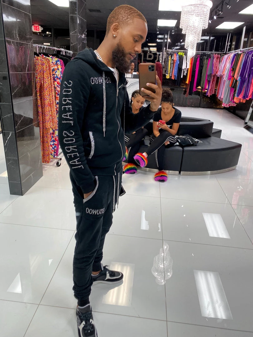 It’s  cold outside! Our Winter Bling set comes in a 2 piece, a hoodie jacket and long jogger style pants. The jacket comes with crystalized So Real logo on the sleeves, crystalized accents on the jacket pockets, and embellished draw strings. The jogger style pants have GSUWOO crystalized logo on the back-bottom area, and left front pocket.Â