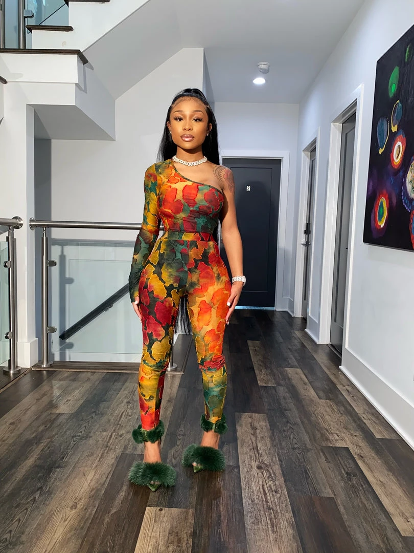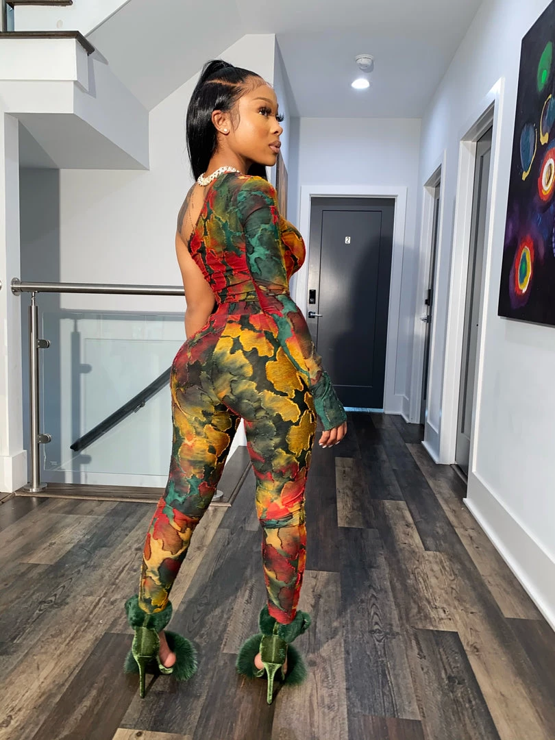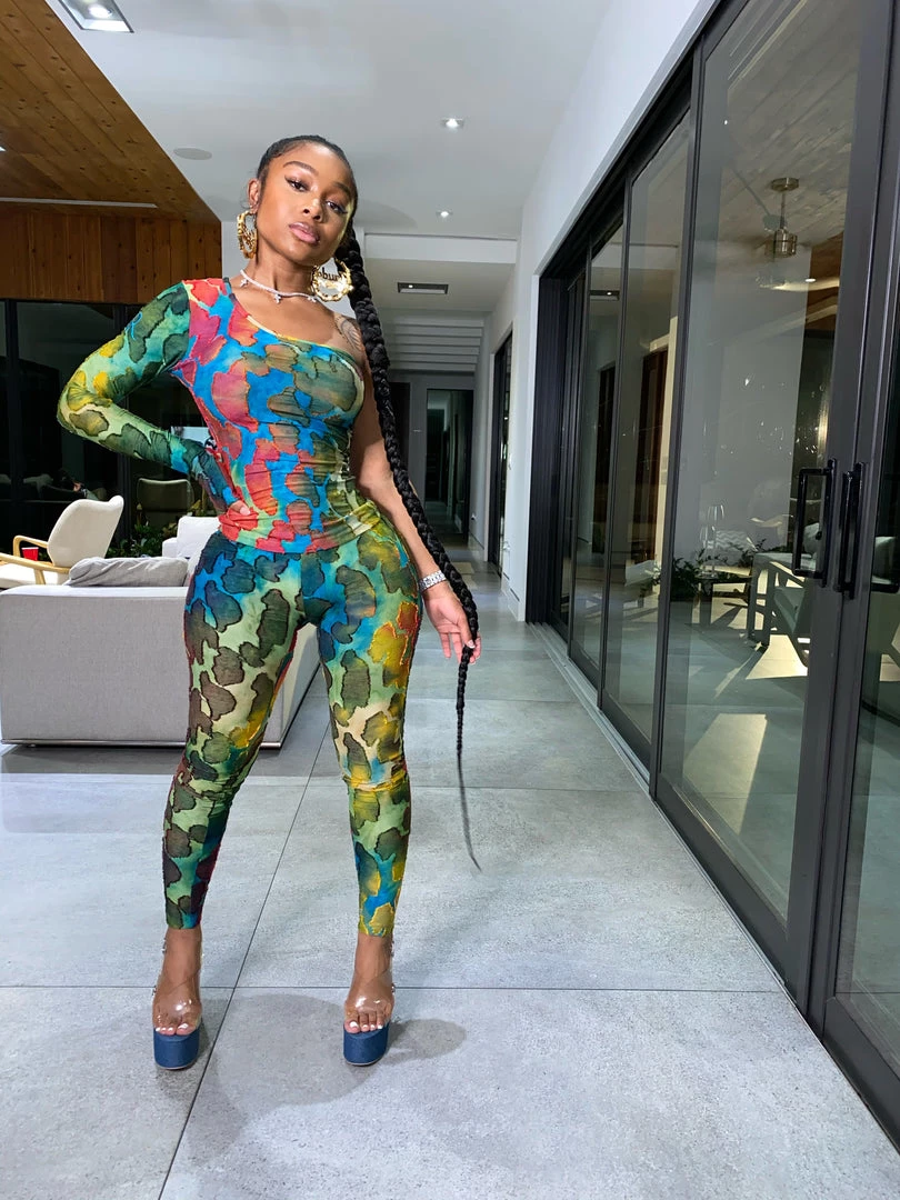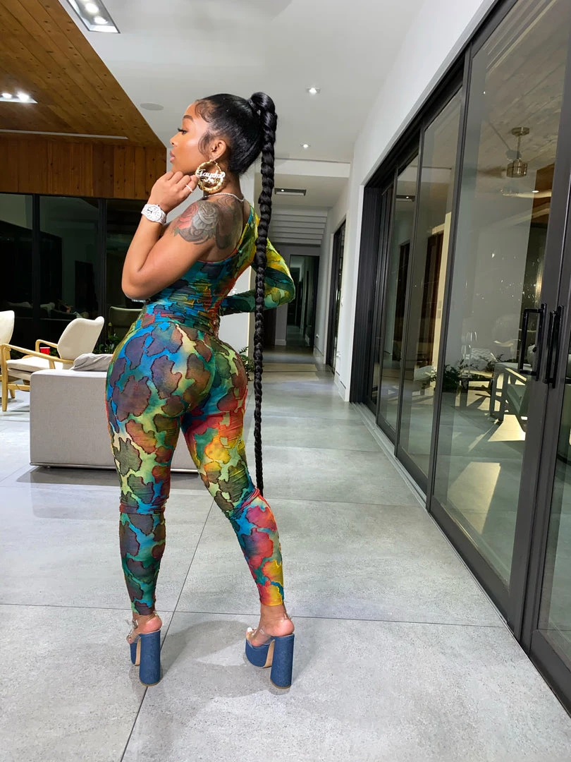 A little splash in a canvas! Our new Water Color Set is a stand out in any crowd. Our set comes with a one sleeved blouse, partial opened shoulder, and matching tights. The blouse can be tucked in or hangin down, and the form fitting legging provide the perfect fit for any body type.