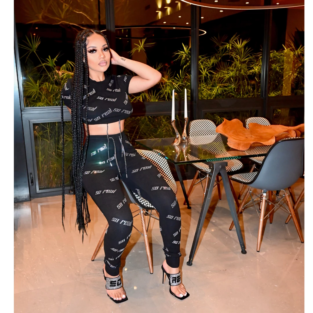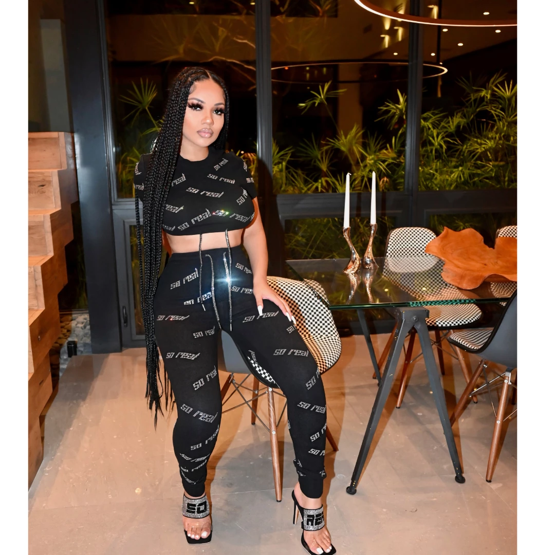 Cause I’m Icy! Step out and become a Icy girl when you wear the Solitaire set! This is taking luxury sweats to the next level! The hand placed swarovski crystals So Real monogram will dance all day and night!Â