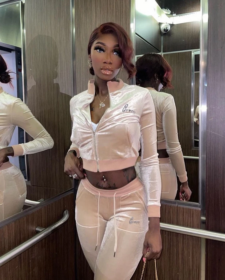 A blast from the past! Our new Vintage Velour set takes us back to the 2000’s with its classic low rise waist, flared legs, and our classic logo. Vintage Velour features a four pocketed pants (two in the front and 2 in the back), a cropped zippered jacket, a hoodie, and two front pockets. Bring out the hoop earrings and gold bangles for this one!